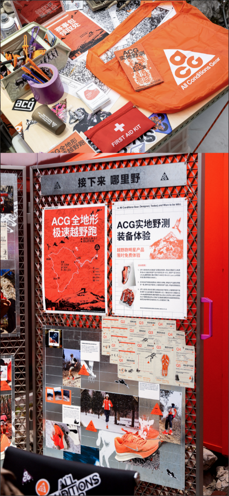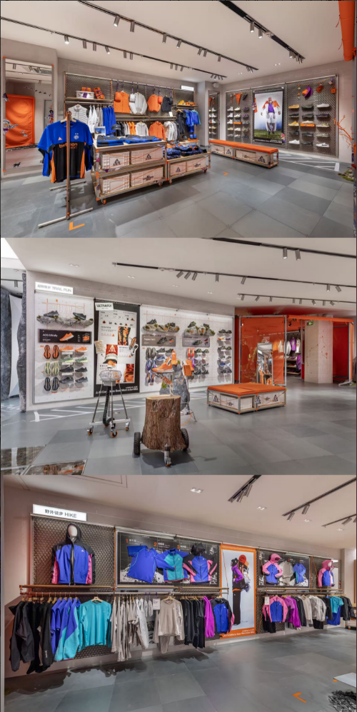 硬核装备库:店铺布局呼应ACG三大核心运动领域:越野跑步、野外徒步与户外探索。